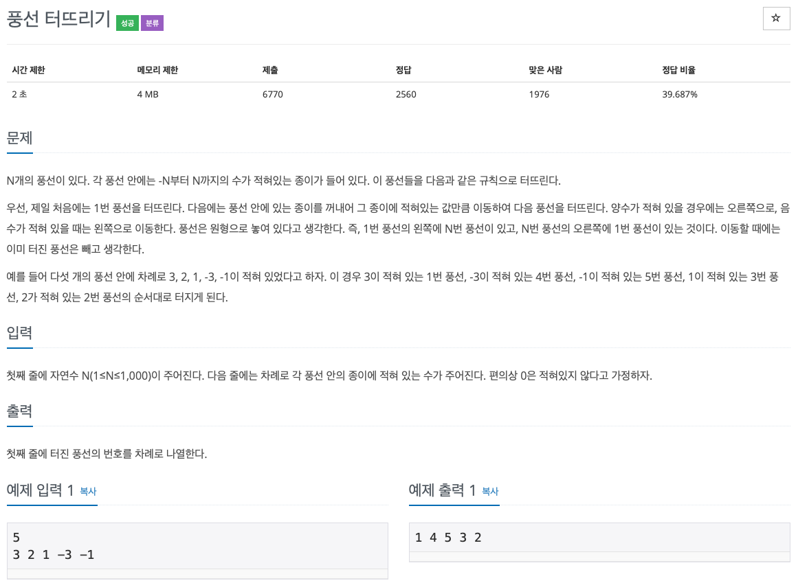 [백준] 2346 풍선 터뜨리기 본문