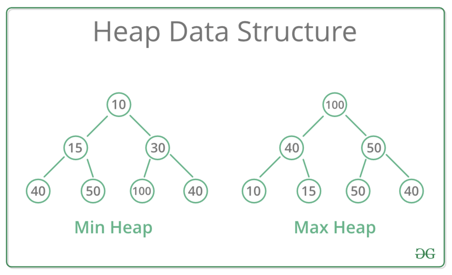 - 최소 힙: 부모 노드의 키값이 자식 노드의 키값보다 항상 작은 힙