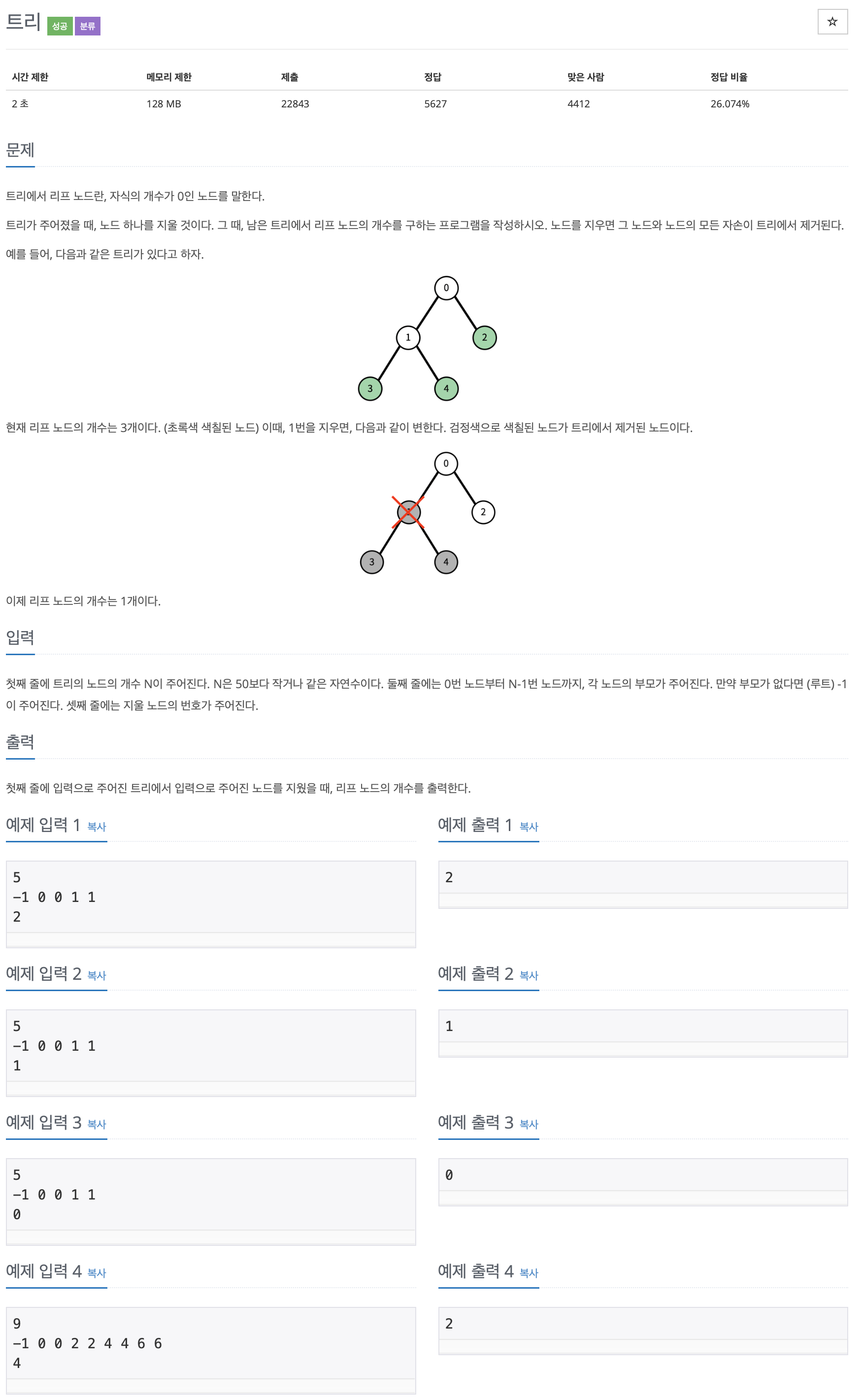 def dfs(delete_node, arr): # delete_node를 부모로 갖는 원소 삭제