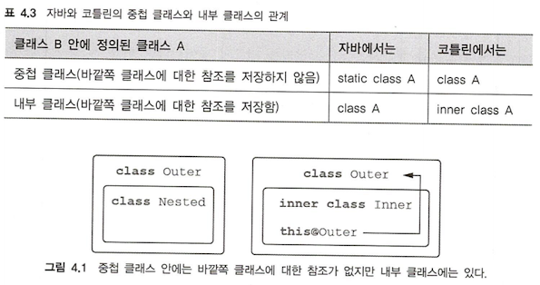 - 코틀린에서는 외부 클래스가 내부 클래스나 중첩된 클래스의 private 멤버에 접근할 수 없다는 점이다.