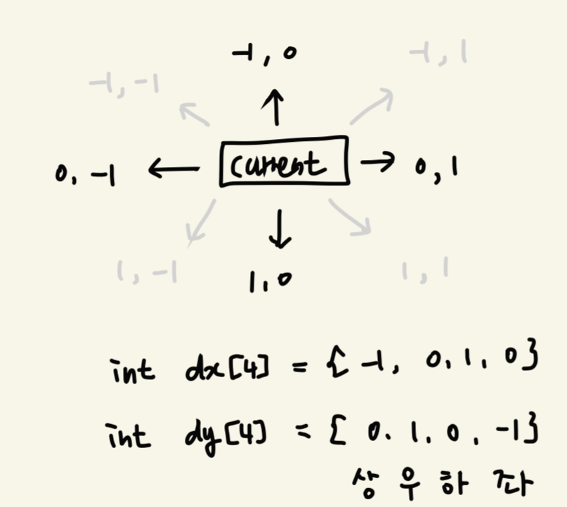 int dx[4] = { 0,0,-1,1 }, dy[4] = { -1,1,0,0 }; // 좌우상하