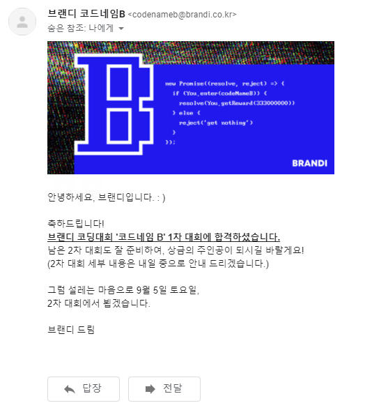 브랜디 코딩대회 '코드네임B'를 우연히 알게 되어 응시를 했다.