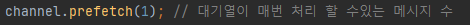 : prefetchCount가 1일때는 한 번에 1개의 데이터만 처리 가능하므로 아직 ack를 받지 못했으면 그 버퍼에는 메시지 보내지 않음. 따라서 작업을 분산 시킬 수 있다.