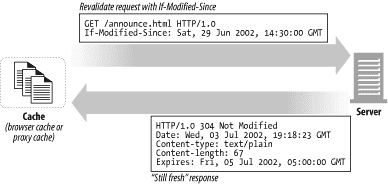 캐시 서버는 If-Modigied-Since 헤더를 통해 값이 변경되었는지 검사한다. 변경 되었다면 200 OK 코드로 값이 넘어 오고 변경되지 않으면 304 Not Modified를 보낸다.